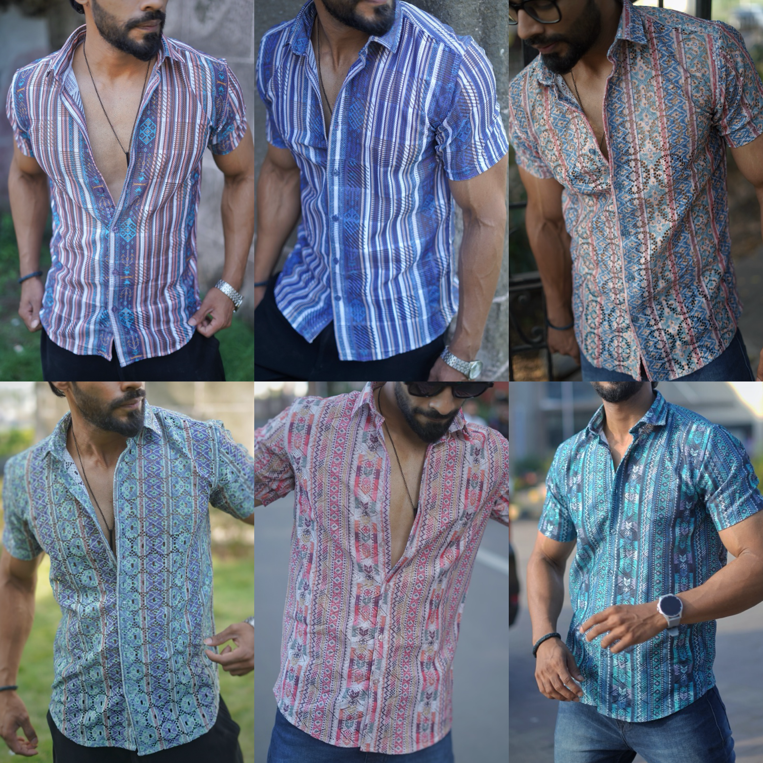 The High-Fashion Trendsetter. Imported Half-Sleeve Net Shirt